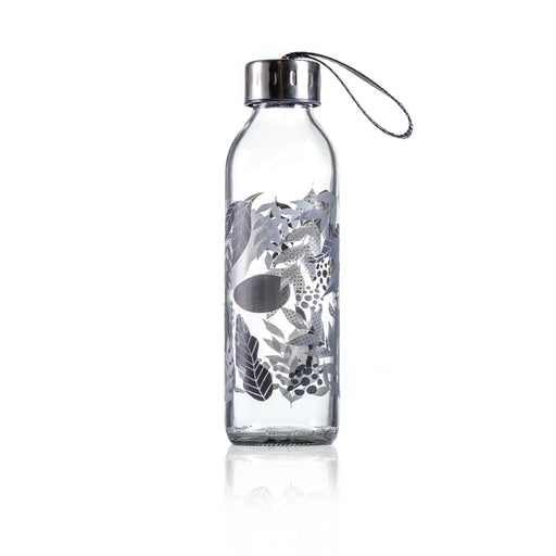 Consol Glass Sleek Grey Leaves Bottle 500ml